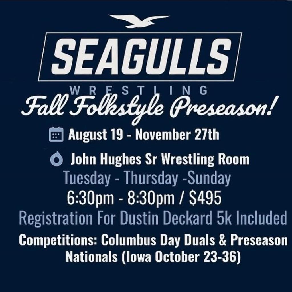 The Seagull Wrestling Club will participate in the 6th Annual Dustin Deckard Memorial Run this Saturday Sept. 21,m 2019. The 5k run will be held at Riverview Beach Park in Pennsville, NJ rain or shine. Registration for the run is at 7:30 a.m. with the 5k run beginning at 9 a.m. All proceeds will benefit the Dustin Deckard Scholarship Fund. Please register at LMsports.com